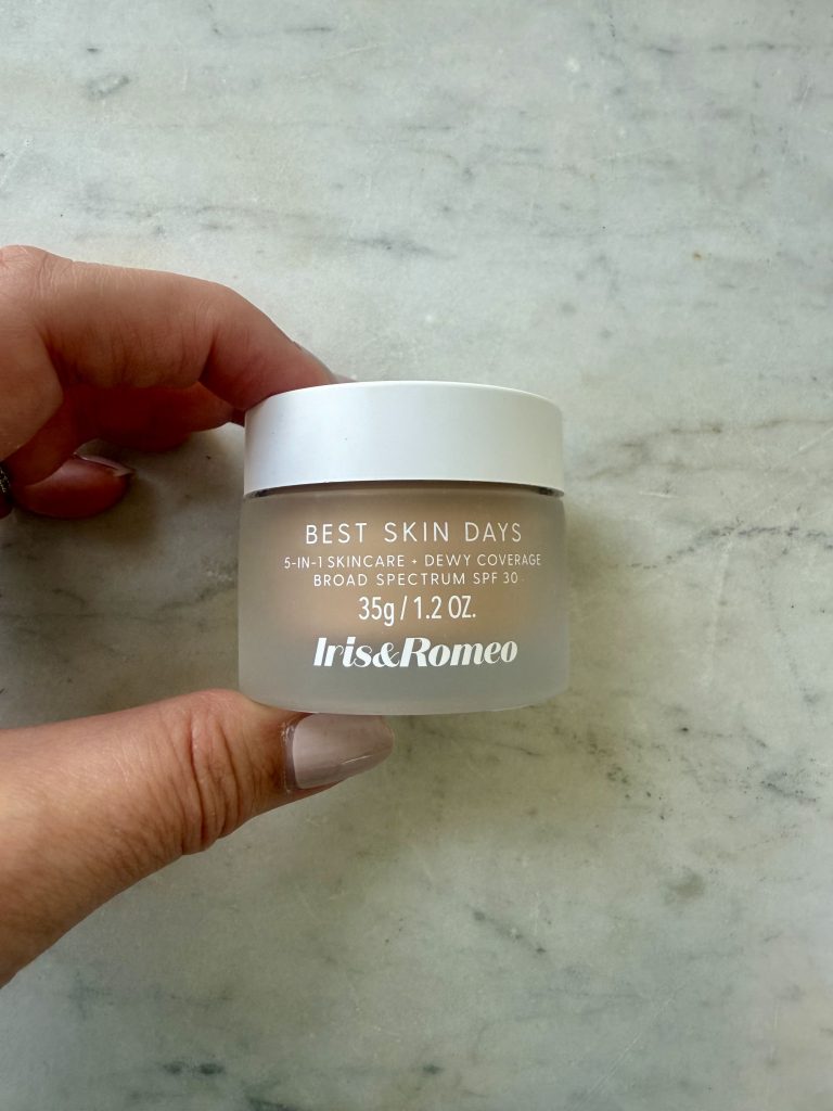 While I think Weekend Skin is Iris & Romeo’s superior product, Best Skin Days comes in more shades and is a little closer to a foundation in its coverage. This one has a whipped texture that can be polarizing; I find it blends the best with a damp sponge (you can never go wrong with a Beautyblender), which leaves your skin with a fresh, dewy finish. It does have SPF too, which is a bonus. I use shade 4 in this one.