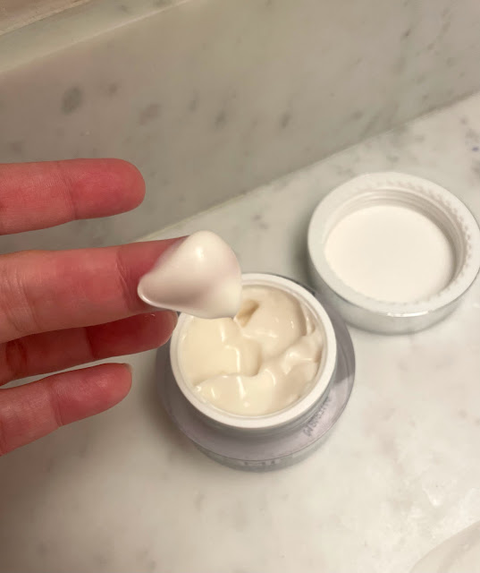 I am going completely out of order here, but this is actually the 2nd step in the process—after the cleansing balm, I use one of these pads on my face, wait for my skin to dry, then put on the cream. These pads totally remind me of Stridex from the ’80s (remember those?), except the key ingredient is lactic acid versus benzoyl peroxide. They perform a similar function, which is to exfoliate your skin and encourage cell turnover without damaging your moisture barrier; in layman’s terms, they help clear the dead skin cells so your skin looks glowier. As far as active ingredients go, my skin tends to tolerate lactic acid pretty well; these do not irritate me whatsoever, and I feel like they’re actually making a difference in my pores (which are notoriously large and deep). I also appreciate the convenience of pulling them straight out of the jar, versus the bottle-and-cotton-pad routine that comes with a regular toner, however I wish they came in a container that wasn’t so large and plastic (thankfully it is recyclable). I will most likely buy these again too; brands design the products in their regimens to work together, and I do appreciate how gentle yet effective these are.