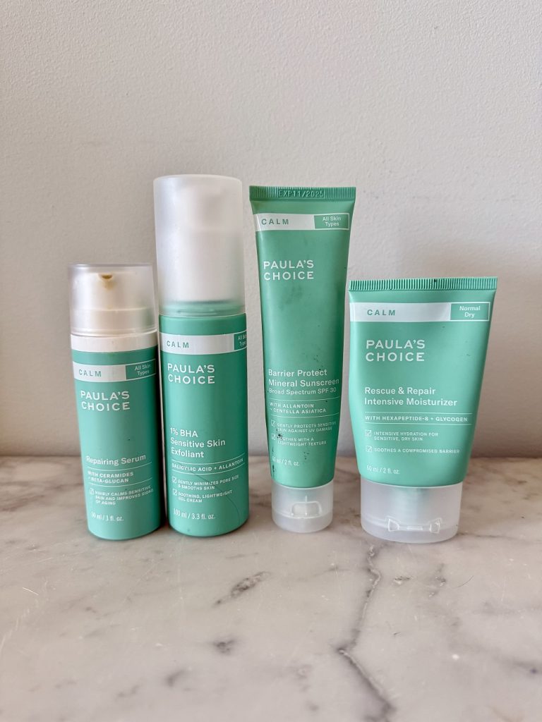 Whenever anyone asks me what skincare they should be using, I always say the same thing: You need a cleanser to clean your skin, a moisturizer to hydrate, and SPF to protect it. That’s the bare minimum, and for a lot of people, it’s enough. I recommend seeking out gentle ingredients, especially if you have reactive skin, which I do to some extent—my skin tolerates certain ingredients but not others, and figuring this out is usually a matter of trial and error, which you may or may not have time for. So the CALM line is a great place to start for gentle yet effective products—the Intensive Moisturizer, Barrier Protect Mineral Sunscreen, and Gentle Cleanser (not pictured because I used it up a long time ago) are all solid. If you want to take things a step further, the Sensitive Skin Exfoliant manages to smooth and soothe skin at the same time, and I like to layer on the Repairing Serum, because my skin is always dehydrated AF.