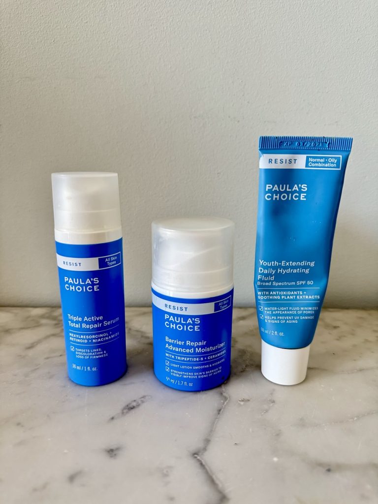 This last category is a little complicated for two reasons. First of all, the term “anti-aging” is problematic because aging is inevitable and “anti” puts a negative spin on it, not to mention the impossible standards of youth and beauty that women are expected to meet even as we, yes, age. That said, no one has really come up with a better term yet, so we’re stuck with it for the moment. The other reason this category is a little complicated is that the ingredients in some of the products start to get a little complicated and cocktail-y, with multiple active ingredients. In the case of the Triple Active Total Repair Serum, which has, yes, three actives—a retinoid, niacinamide, and hexylresorcinol—you could, in theory, have a reaction to it and not know exactly what is causing it. This one seems to be ok for me, even with the niacinamide, but I think my skin might be better off with something a little more mellow. I do, however, really like the ultra-thicc Barrier Repair Advanced Moisturizer, which doesn’t have any actives (and that’s fine) and the Youth Extending Daily Hydrating Fluid SPF50, which has a really nice, lightweight feel—it’s meant for oily skin (which mine is certainly not) but works for all types. All of which is to say, it’s good to be open to trying things that you think may not work or be right for your skin type—you might not know it as well as you think you do! Thankfully, Paula’s Choice helps to demystify skincare with its straightforward ingredient listings and explanations of what they do. Not all of their products are a home run for me, but when they hit, they slam. I highly recommend checking them out!