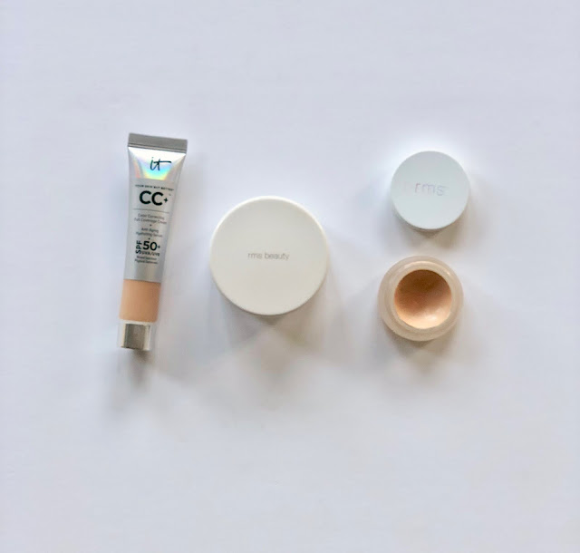 I am a huge fan of RMS Beauty, Rose-Marie Swift’s clean makeup line; her Un-Cover-Up concealer is arguably better than my previous holy grail, YSL’s Touche Eclat. I use it under my eyes and along the length of my nose, then I dust with Un-Powder, also by RMS, to set and control shine. If I’m doing a photo shoot, before I use the powder, I also use IT Cosmetics CC cream where my pores and redness are the worst, along my T-zone and chin.