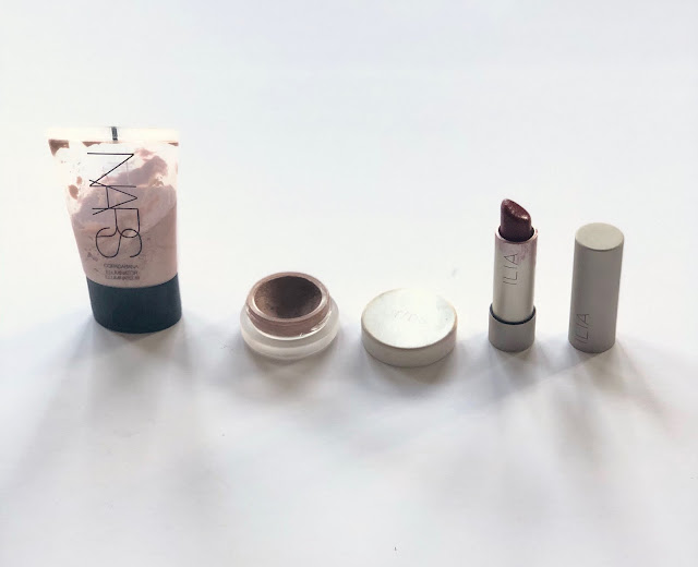 On my cheekbones, I put Nars Illuminator in Copacabana. I will eventually switch to RMS Living Luminizer, but that could be years from now, because the Nars stuff lasts FOREVER. Since it’s summer, I put a little RMS Buriti Bronzer on the apples of my cheeks; in the winter, I use Beautycounter Color Pinch in hibiscus. Finally, I finish with Ilia Tinted Lip Conditioner in Arabian Nights, which is much more sheer than it looks in the tube but pigmented enough to last for hours. I almost always wear clean lipstick—since you end up swallowing most of it, better safe than sorry!