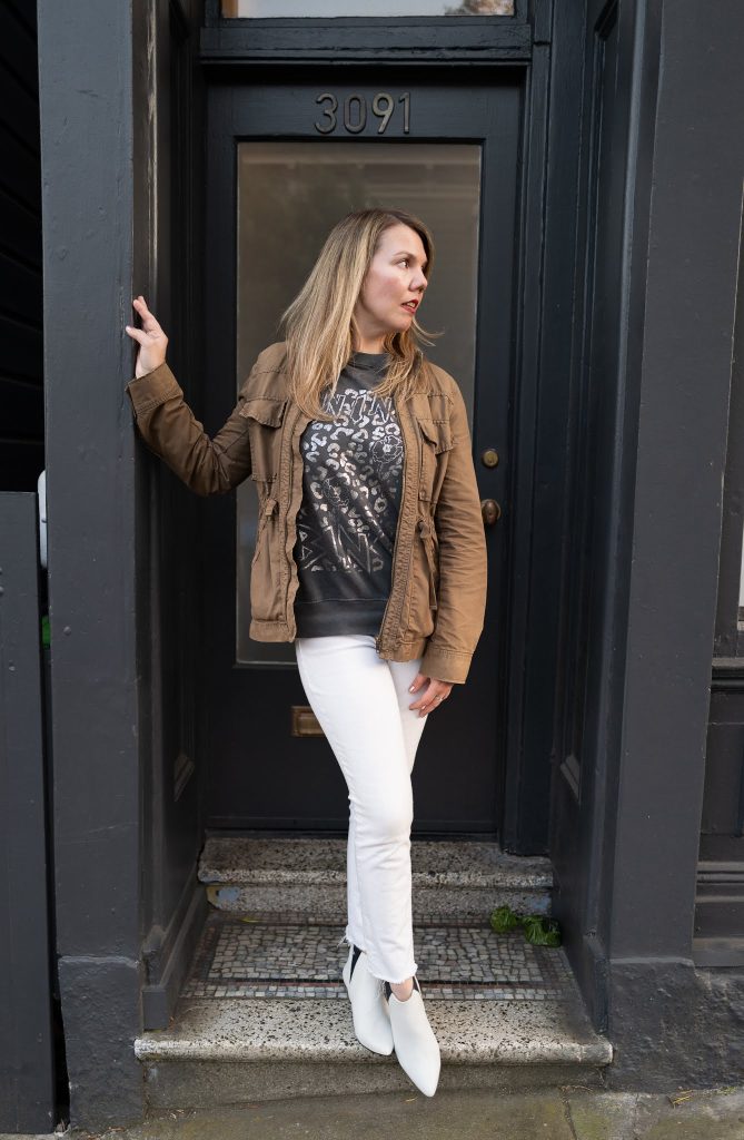 TBH, I had to take a little break from this sweatshirt, because it was probably one of my most-warn pieces during quarantine. These photos remind me of how much I love it, though, so I think it might be time to add it back into regular rotation. More importantly, it feels like time to put on heels again, and I love how these pointy-toe white boots help further elongate my legs—never a bad thing when you’re wearing white.