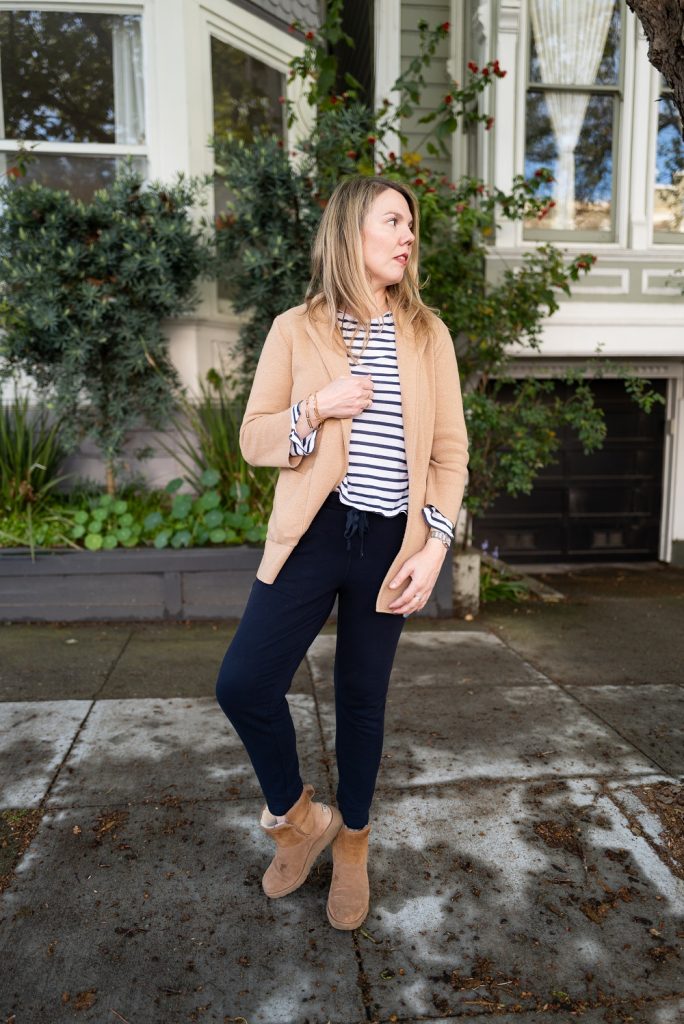 While all the looks I’ve featured here are comfy, this is by far the comfiest—and the one you probably don’t want to wear the office, unless your workplace has gone really casual. (If so, lucky you!) This has been one of my go-to outfits for the last couple of years, and while I’m appreciative of its comfiness, I’m ready to take it out of heavy rotation. Still, there’s something to be said for business on top, loungewear on the bottom—it will forever have a place in my heart, and likely in my work-from-home wardrobe.