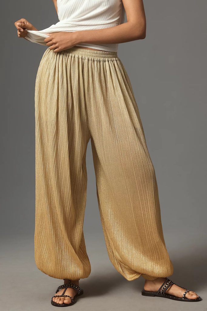 Lately “trend” has become a dirty word, and I can kind of understand why. Fashion has always had trends—the definition of the word itself means something popular or current—but social media has definitely sped up the lifespan of a trend, and fast fashion retailers, particularly those of the drop-ship variety from overseas, have been happy to comply with this lightning-fast cycle. Not to mention, we’re coming out of a longer “quiet luxury” moment that emphasized more timeless, neutral, trend-agnostic pieces versus novelty. This is not a dig on minimalism; I understand why so many people gravitate toward a look that feels more classic—there’s a certain ease to it, and figuring out what to wear can be challenging enough. That said, quiet luxury itself is a trend, and sure, it’s fun to cosplay as old money. Which is exactly the point: Fashion should be fun. It’s fun to try on something new—a trend!—and see if fits. If it doesn’t, or if you don’t even want to try it on, you don’t have to participate! As I always say, life is short and you should wear what you love. But sometimes you don’t know what you love if you’re not trying new things. Case in point, I thought the mere idea of oysters was gross until I was starving and at a party where they were the only food that was being served. Out of desperation, I tried some. Guess what? Oysters are delicious. Which brings me to the harem pant.
