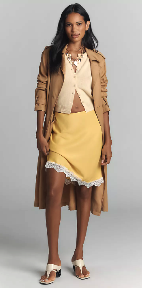 2.Another way to kill two trends with one stone: this lace-trim slip skirt. True, this is more of a dijon mustard color than a butter yellow (Anthropologie calls it “maize” as in corn), but close enough. (For the record, this one also comes in black and pink, which I am equally, if not more, obsessed with.)