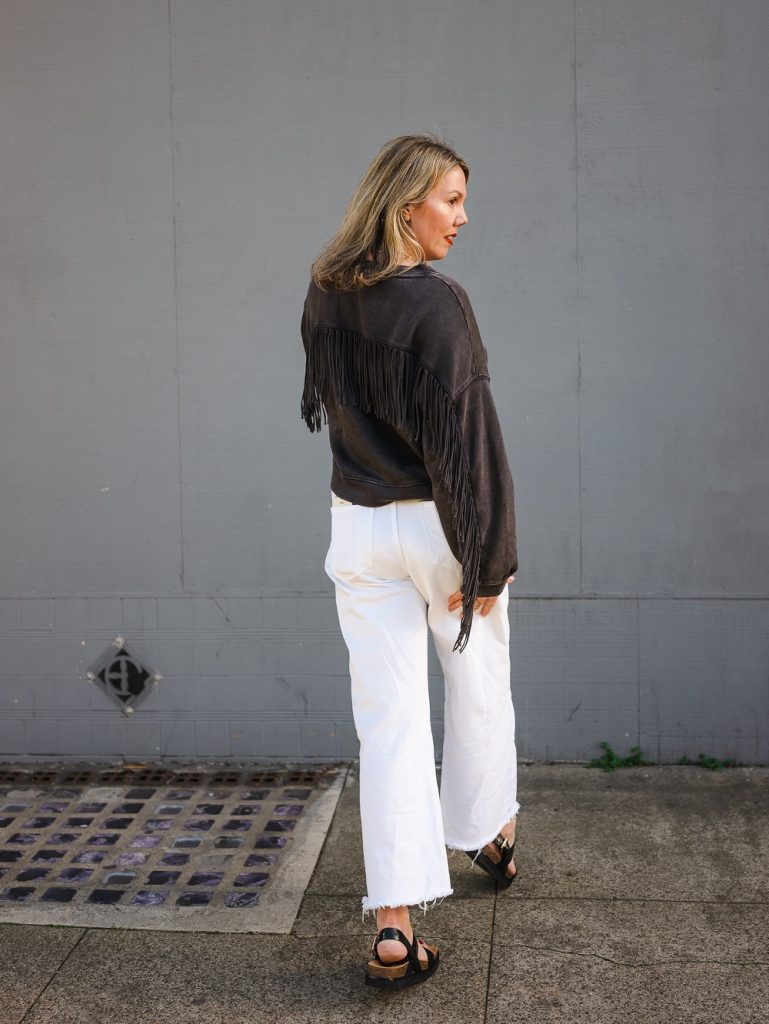 There are certain details that I tend to gravitate toward, and one of them is fringe. Whether it’s long, hair-like strands or a lightly frayed hem, I truly can’t get enough fringe. With all of the clean lines and minimalism that we’ve been experiencing recently in fashion, fringe has been somewhat hard to come by, but with the resurgence of boho, it’s suddenly back and I’m very happy about it. I know certain trends can be feast or famine, so I’m trying really hard not to go overboard with so many great options, but I’ve already bought several fringed pieces this year and have my eye on a few more. But first, the sweatshirt that followed me around the Internet.