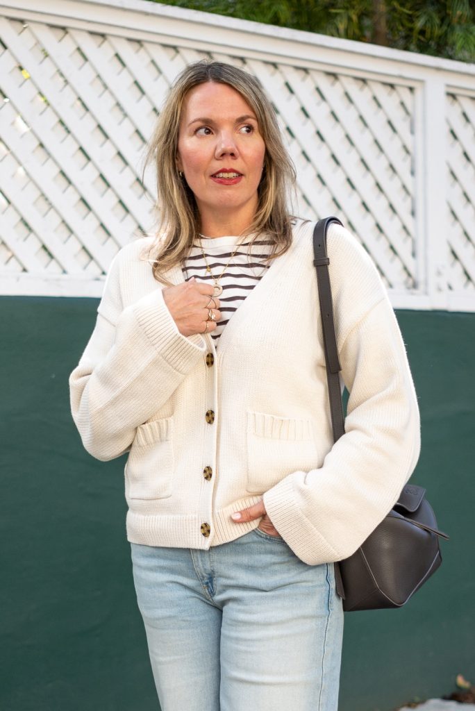 File under things I was not expecting in 2024: a major turnaround from Gap. Lately I’ve been shopping from them more than any other Gap brand (sorry, Banana Republic!)—their basics-with-a-twist are so good, especially the cotton cardigan in this post that’s heavily inspired by the Khaite Scarlet cardigan. The cardigan is mostly sold out at this point, but let’s hope they bring it back in 2025, as I’d definitely buy it in more colors.