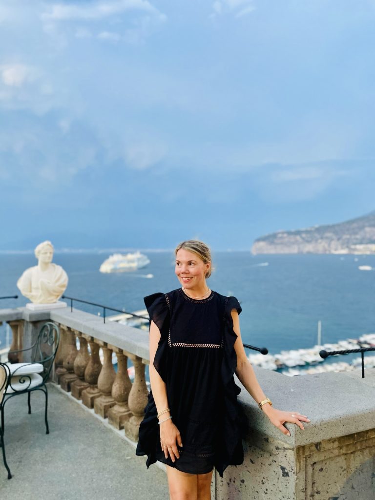 Once again, I am wearing a swimsuit under this dress, as I learned on our first day in the Amalfi Coast that afternoon dips in the Mediterranean are absolutely essential in summer. I had ordered this dress the week before we left and it arrived just in the nick of time, about an hour before we left for the airport. It’s giving Isabel Marant, which I love, for a lot less—I’m a huge fan of this brand.