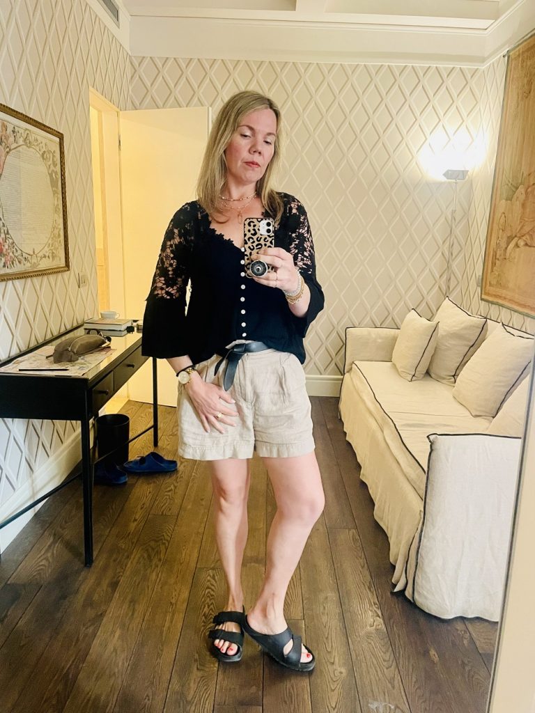 Ciao! I am back from 12 glorious days in Italy and am full of Aperol spritzes, pasta al frutti di mare, and gelato. (All totally delicious.) I will say, Italy in August is not for the faint of heart—temperatures were in the high 80s or low 90s every day, and I was sweating in places I didn’t know I could sweat from, which made rewearing things a bit of a challenge. As I noted in my Substack, I packed for the entire trip in a carry-on, and I’m proud to say I wore everything I brought except one shirt and one skirt; I really should have packed one less pair of shoes (especially since I bought two new pairs, whoops), but overall, I was really pleased with what I brought. I tried to capture photos of all of my outfits, either out and about or in the full-length mirrors in our hotels, so I could show you how careful packing can pay off. Here’s everything I wore on my trip to Italy.