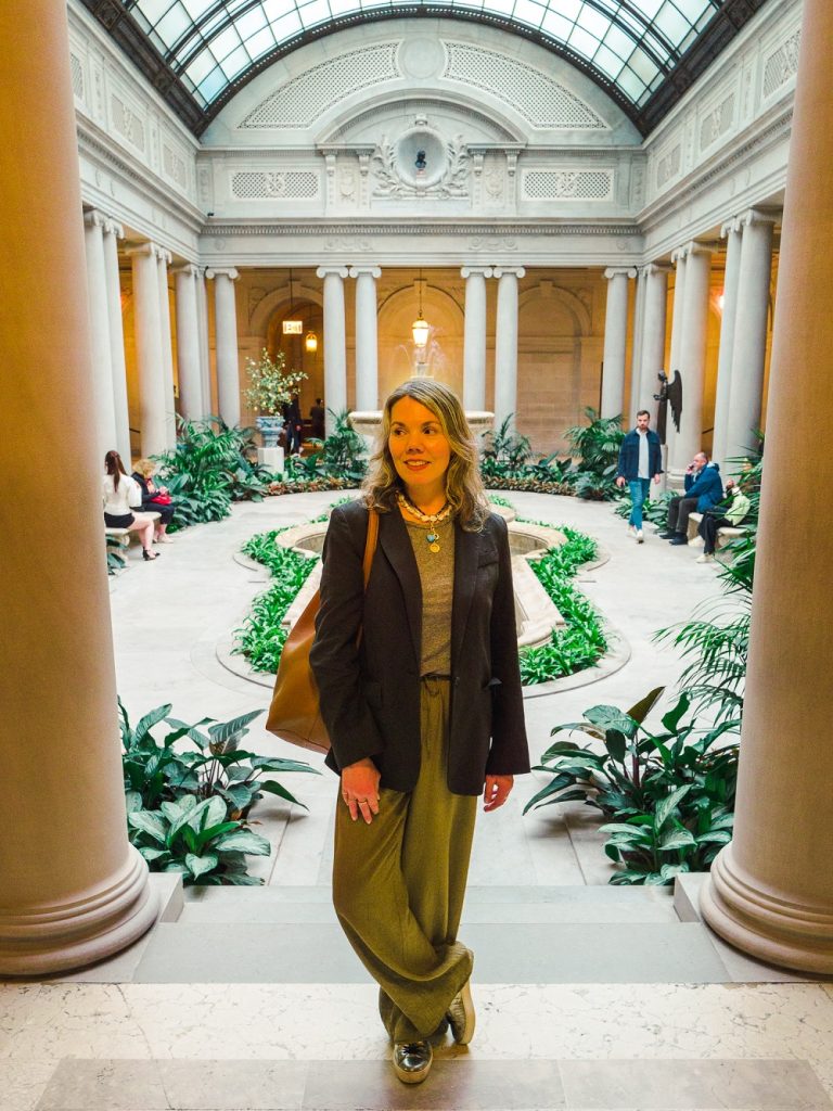 I’ve been shopping secondhand a lot recently, so you’ll be seeing more and more of it here. This blazer was my way to try the butter yellow color that’s been trending this spring; while I got a compliment from a stranger on this outfit, it did feel a little bright for Soho, where we were staying. It was also so warm, I had to ditch the jacket by lunchtime. But I think I will get a lot of wear out of this skirt, and the shoes are from my former coworker Tamar’s company Bells & Becks—the kitten heel is super comfy, and I love the sculptural detail on the toe. All of her shoes are made in Italy and they are gorgeous.