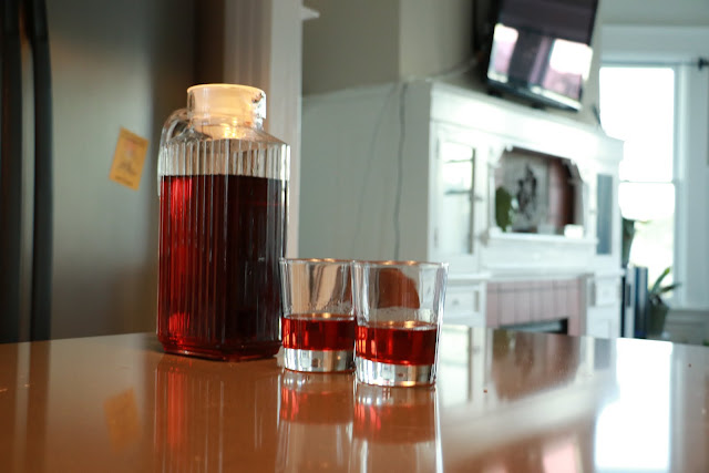 Depending on the size of your barrel, you’ll want to age your Negroni for at least 4 weeks (which is what I do). My instructions recommend giving the barrel a quarter turn once a week, which is also a good time to check in on your progress with a little taste test. You’ll notice week over week that the color gets lighter—from a deep red to more of a rusty orange—and the flavor gets smoother and richer. Then, when you can’t wait any longer…